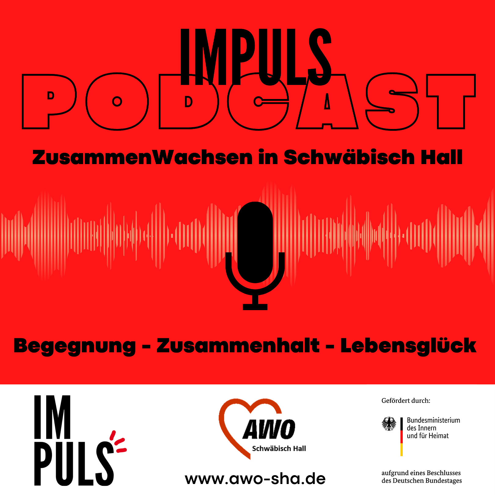 Zusammenhalt stärkt uns. Das gilt besonders für Schwäbisch Hall, wo Menschen aus über 100 verschiedenen Nationen zusammenleben. Eine Gemeinschaft entsteht dann, wenn man sich gegenseitig vertraut und einander nicht mehr fremd ist, wenn der Fokus auf den Gemeinsamkeiten liegt und nicht mehr auf den Unterschieden und wenn die gemeinsame Zukunft wichtiger wird, als die individuelle Vergangenheit. Das vom BAMF finanzierte Projekt ImPuls – Zusammenwachsen in Schwäbisch Hall nutzt die Formate ImPuls-Podcast und ImPuls-Talks auf der Bühne, um Menschen die Möglichkeit zu geben, ihre Erfahrungen und besonderen Erkenntnisse mit anderen zu teilen.